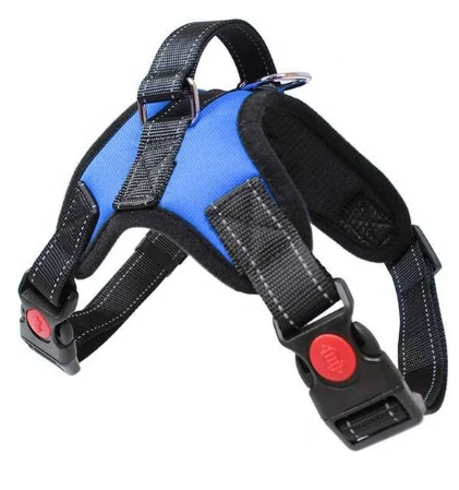 2. **Mango Integrado**: Este arnés está equipado con un mango resistente en la parte superior, lo que te permite mantener un control adicional sobre tu perro en situaciones de tráfico o cuando necesitas mantenerlo cerca.